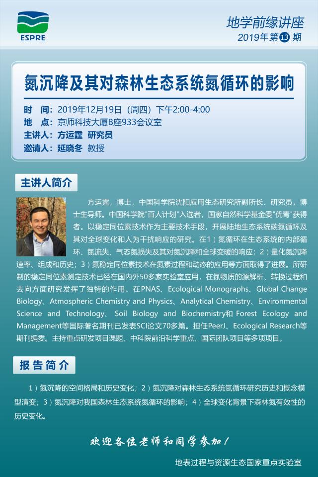 【12.19地学前缘讲座】氮沉降及其对森林生态系统氮循环的影响
