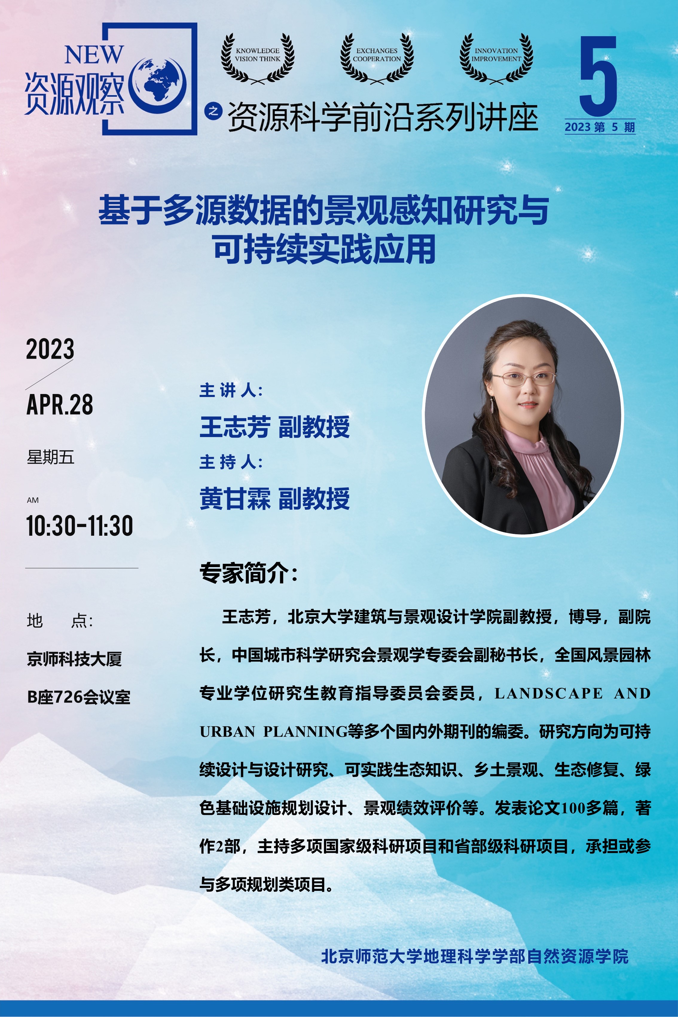 【4月28日】王志芳 副教授:基于多源数据的景观感知研究与可持续实践应用