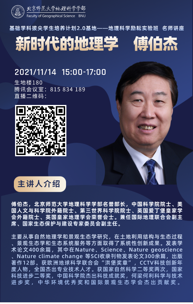 【11月14日讲座】傅伯杰,新时代的地理学