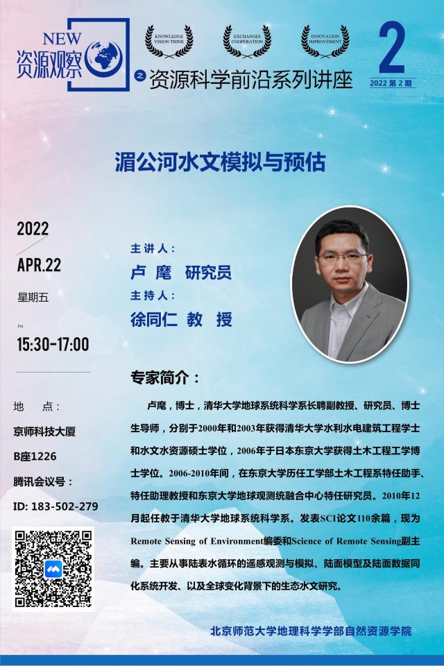 【4月22日讲座】卢麾,湄公河水文模拟与预估