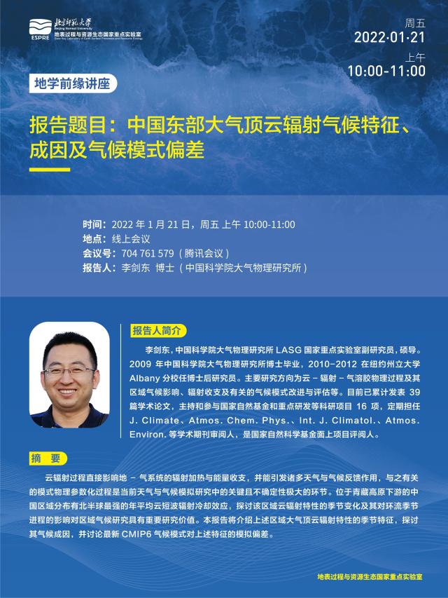 1.21学术讲座-中国东部大气顶云辐射气候特征、成因及气候模式偏差