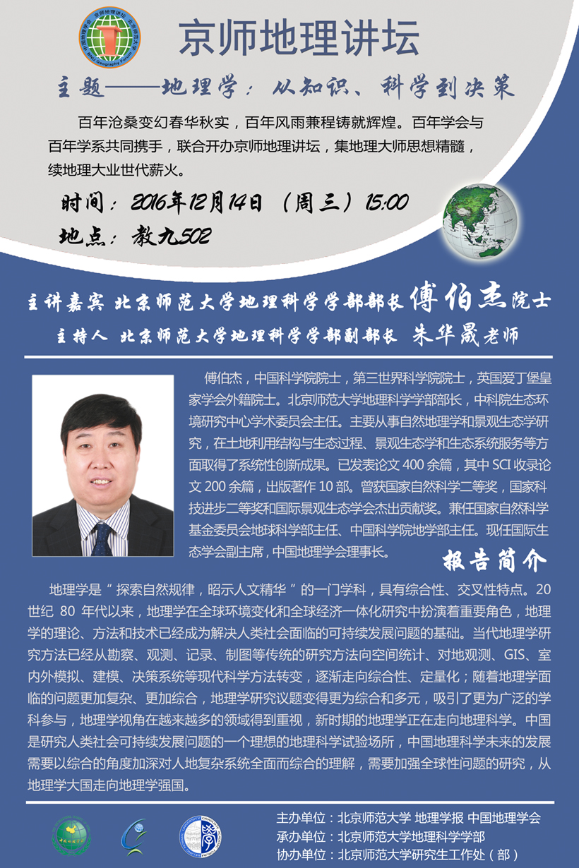 【12.14京师地理讲坛】地理学:从知识、科学到决策