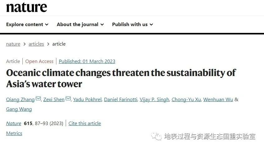 2023年3月1日,国际顶尖学术期刊《自然》在线发表了地表过程与资源生态国家重点实验室张强教授团队的研究成果“Oceanic climate changes threaten the sustainability of Asia’s water tower”,在亚洲水塔水循环研究中取得重要进展。论文以地表过程与资源生态国家重点实验室为第一署名单位,这是实验室近年来取得的又一重要学术突破。