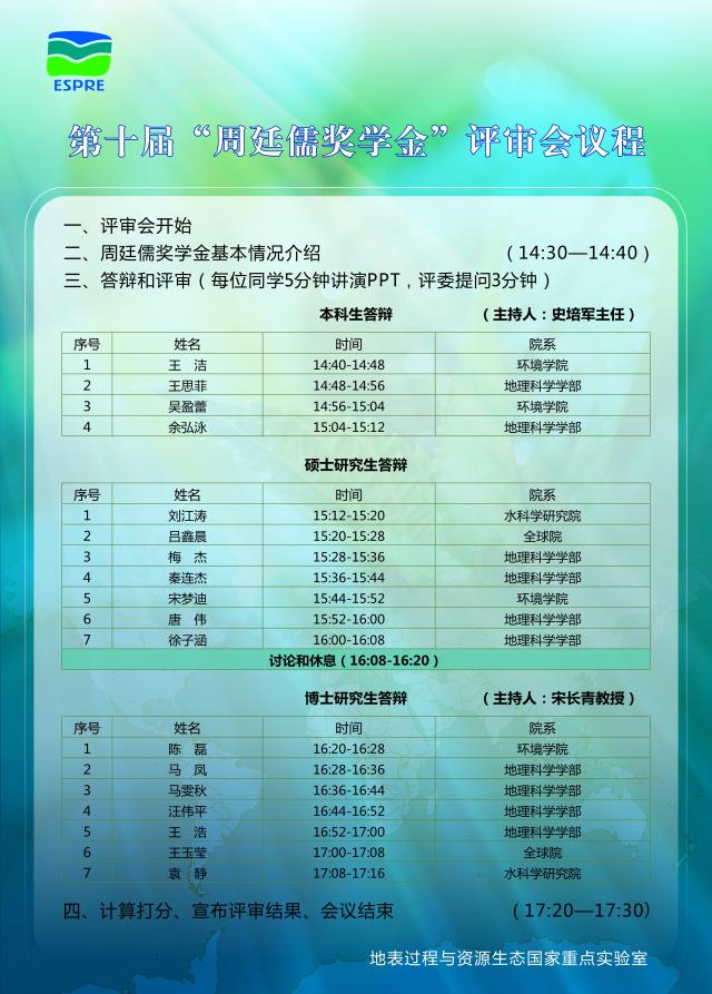第十届周廷儒奖学金评审会议程
