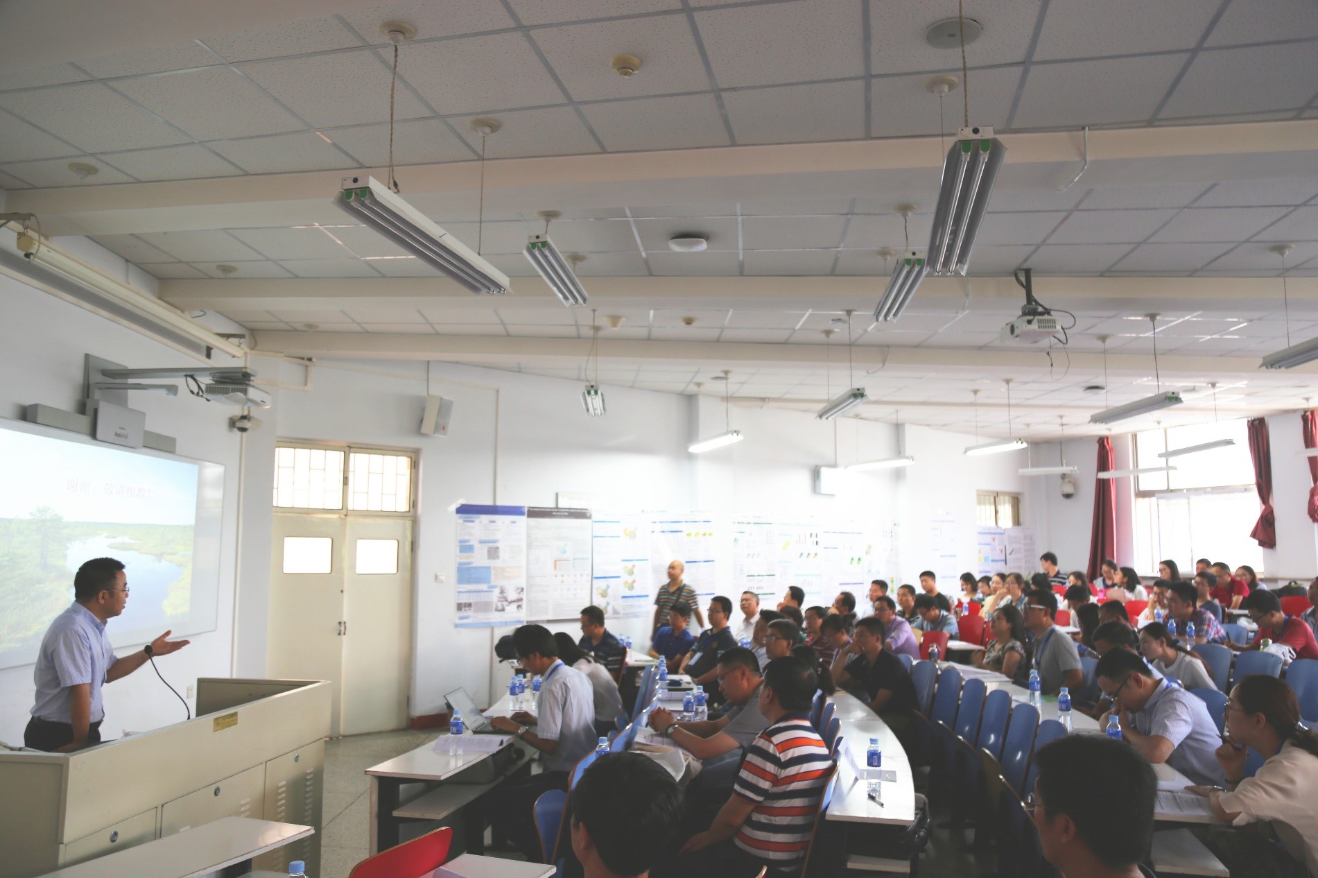 下午,在马明国教授的主持下,中科院水利部水保所冯浩教授、北京师范大学徐伟教授、西南师范大学角媛梅教授、内蒙古地图院王俊枝高级工程师、内蒙古农业大学迟文峰博士、北京师范大学张化高级工程师、南京师范大学吴小波博士、中科院地理科学与资源研究所戴尔阜研究员先后进行了“国内外旱区农业发展比较研究”、“城市地震灾害应急避难所选址的优化研究”、“哈尼梯田区优势景观类型对泉水氢氧同位素效应的影响”、“基于国情地理监测的内蒙古生态系统时空过程与影响因素分析”、“蒙古高原1990-2015年土壤风蚀时空格局与驱动机理”、“基于咸水冻融技术的北方滨海地区盐碱地改良与修复研究”、“过去30年来青藏高原冻土水热变化研究”、“基于复杂性的土地利用模拟”8个学术汇报。