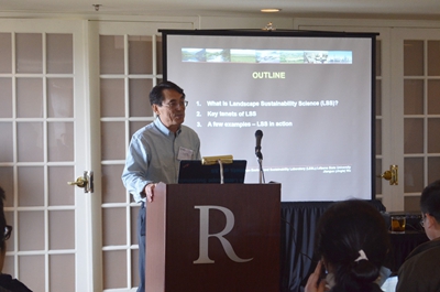 该分会场由景观团队何春阳教授和邬建国教授联合发起、组织和主持。主要目的是邀请全球一流学者就气候变化和人类活动双压力下的全球干旱地可持续发展问题进行深入交流和探讨。共有来自世界各地的50余位同行参加了分会场活动。