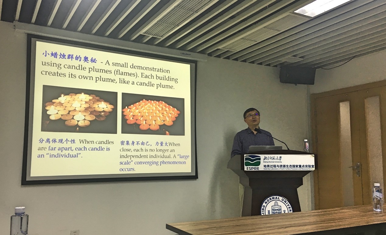 2016年12月12日下午,应实验室景观团队何春阳教授邀请,香港大学机械工程系系主任李玉国教授来访并在京师科技大厦933会议室作了题为“城市气候,雾霾与设计:探讨城市热中午延迟和热穹隆现象”的学术报告。陈云浩教授、黄庆旭副教授和刘志锋博士等30多位师生参加了报告会。何春阳教授主持了报告会。