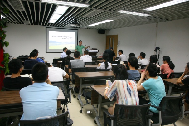 2016年7月1日,应地表过程与资源生态国家重点实验室陈晋教授邀请,美国莱斯大学朱楷博士来访我院,并于北京师范大学南院京师科技大厦B座9层933会议室开展题为“Global change biology across space and time”的学术报告。报告由陈学泓老师主持,共有来自减灾与应急管理研究院、资源学院等多个单位的20多名师生参加。