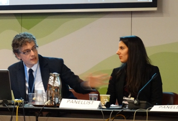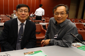 史培军、叶谦教授在联合国减轻灾害风险办公室(UNISDR)科学技术大会会场 |