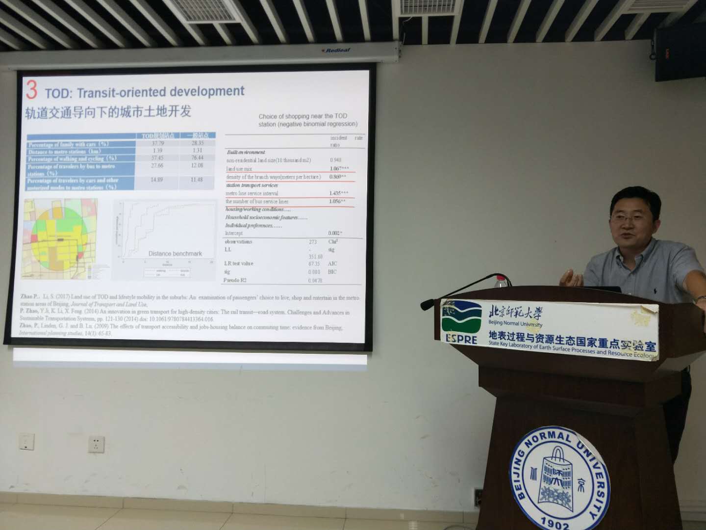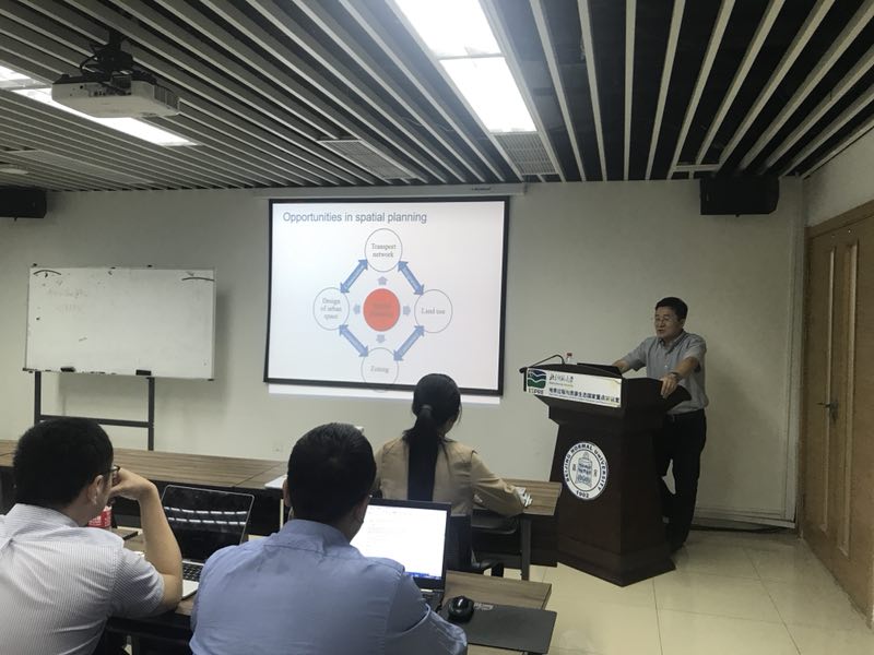 2018年9月20日上午,北京大学城市规划与交通研究中心主任赵鹏军教授来访,并在京师科技大厦933会议室为到场师生作了题为“空间规划与可持续交通:拥堵、能源与环境”的学术报告。何春阳教授主持了本次报告。