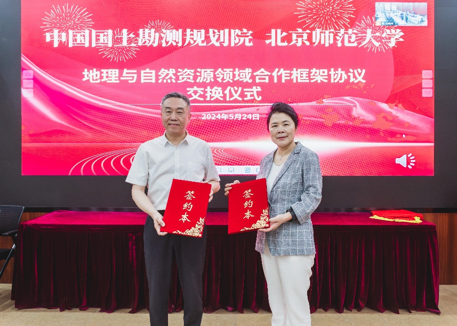 围绕全面履行自然资源“两统一”核心职责,充分发挥各自优势,在地理与自然资源领域的科学研究、教学与人才培养、国际合作等方面开展合作,中国国土勘测规划院与北京师范大学签订了地理与自然资源领域合作框架协议,中国国土勘测规划院冯文利院长和北京师范大学李晓兵副书记分别代表合作单位交换了合作框架协议。