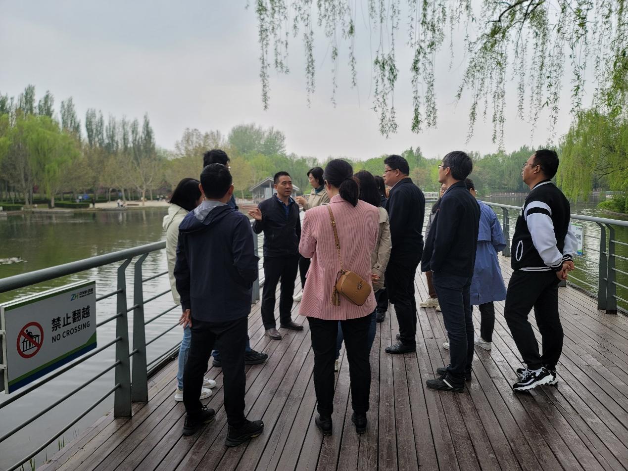 随后,实习队伍前往海淀公园,一个集生态、休闲、文化于一体的城市公园。地理科学学部资源环境工程博士生薛晓宁分享了海淀“三山五园”地区的海绵城市规划设计经验。在她的示范下,师生们对海淀公园的规划设计原则进行了深入探讨,对城市绿带在提升城市生态环境质量中的重要作用有了更为深刻的认识。