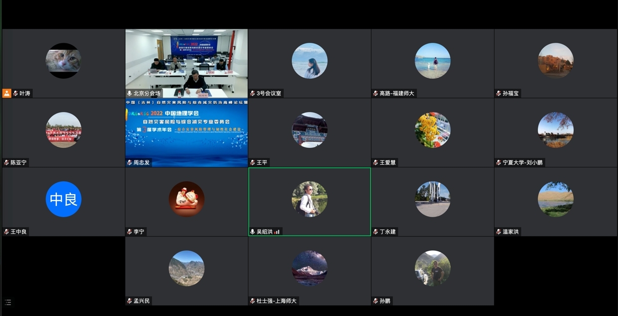 大会特邀了5位专家作特邀报告。中国科学院崔鹏院士阐述了山洪泥石流灾害形成运动过程,并介绍了基于动力模拟的山洪泥石流灾害预警平台与应用示范。随后,北京师范大学史培军教授从地理学视角出发阐述了灾害风险科学体系的建设与发展。中国科学院地理科学与资源所吴绍洪研究员从灾害韧性的角度切入,对韧弹性的社会建设做出展望。中国水利水电科学研究院原副总工程师程晓陶教授级高工基于“7.20”郑州特大暴雨灾害中水利工程调度的具体案例,剖析了水利工程如何更好地发挥作用、提升抵御灾害的韧性。最后,青海师范大学高原能源产业与生态研究中心办公室主任姜璐教授以青海省为具体案例,讨论碳排放风险评估与防范研究的最新进展。除上述特邀报告外,大会还特别邀请了南京大学翟国方教授、上海师范大学温家洪教授、中国气象科学研究院任福民研究员、北京师范大学何春阳教授和方伟华教授做大会主旨报告。