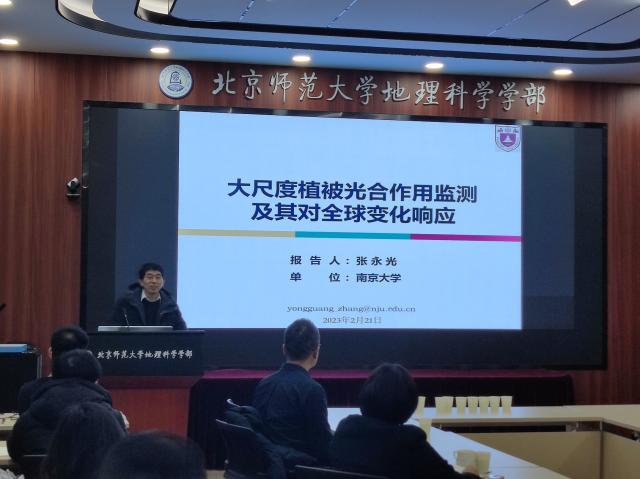 2023年2月21日下午,应地理科学学部地理学院院长张科利教授邀请,南京大学教授、国家杰出青年基金获得者张永光教授在生地楼180会议室作了题为“大尺度植被光合作用监测及其对全球变化响应”的报告,学部教师朱文泉、蒋卫国、吴秀臣、符素华、缪驰远、殷水清、穆西晗及30余名学生参加。