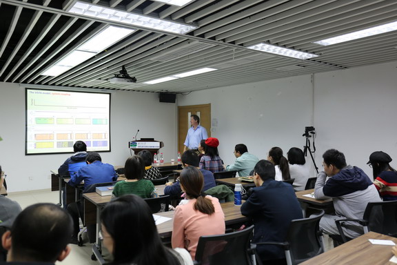 11月17日上午,Giles Wiggs教授作了有关沙丘动力学以及地表释尘野外测定的报告,Giles Wiggs教授主要在南非纳米比亚沙漠开展野外的风沙、沙丘形态以及地表释尘观测,深入分析了不同影响因子(如植被覆盖、空气动力学粗糙度等)对沙丘动态变化的影响,并总结了沙丘系统对全球变化的响应。通过遥感影像选取南非三个主要的释尘源区,分别对三个源区的释尘过程进行野外观测,得到了不同地表类型的侵蚀性特征以及源区地表释尘的时空变化特征。Giles Wiggs教授的报告内容涉及沙丘动力学、全球变化和地表释尘等多方面的研究领域,激发了大家的兴趣,所用的野外观测手段、数据分析方法与表达方式给学院师生提供了很好的启发,值得借鉴。