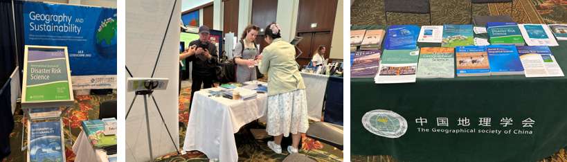 为了更好的提高期刊知名度,在展示厅分别在地理科学学部、中国地理学会和斯普林格出版社展台展示了我院承办的国际灾害风险科学学报(英文版),吸收了不少代表驻足交流。