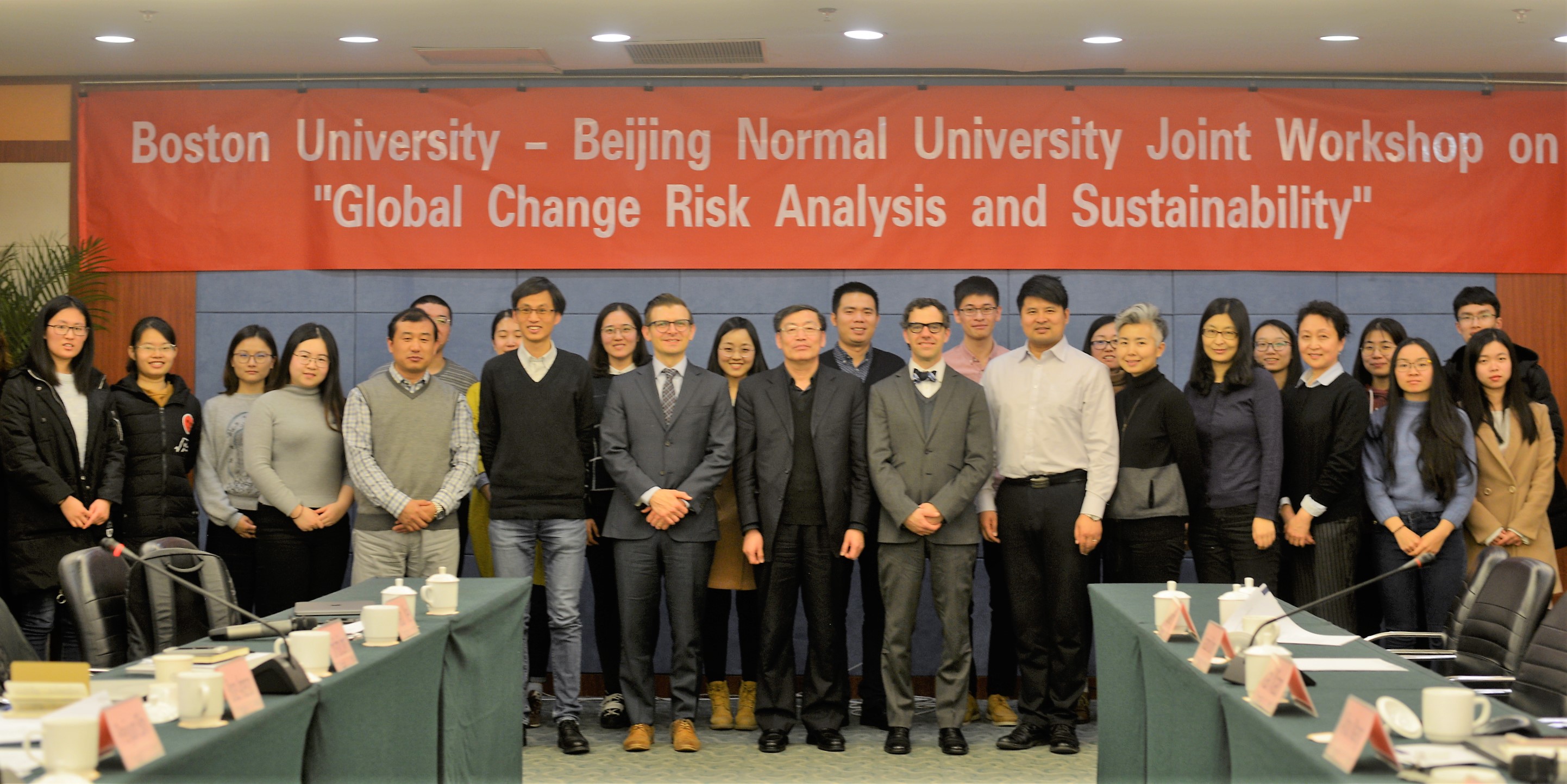 2018年3月5日,在校引智计划项目资助下,波士顿大学弗里德里克S.帕第长期未来研究中心(以下简称“中心”)的Bruce Anderson教授和John Patrick Connors博士来我校开展为期一周的学术交流活动。5日上午,二位学者与 “全球变化人口与经济系统风险形成机制及评估研究”项目(以下简称“项目”)在京师大厦3层第一会议室召开题为“Boston University-Beijing Normal University Joint Workshop on Global change risk analysis and sustainability”的学术会议。我校国际合作处肖凯副处长、地理科学学部副部长董孝斌教授分别代表学校和学部向来访专家表示了欢迎。波士顿大学弗里德里克S.帕第长期未来研究中心主任特别代表,波士顿大学地理与环境系副主任Bruce Anderson教授向参会人员介绍了中心的基本情况,并展示了波士顿大学草签完成的《波士顿大学-北京师范大学合作学术研究备忘录》。地理科学学部外事秘书章文娟老师向外宾介绍了地理科学学部的基本情况。