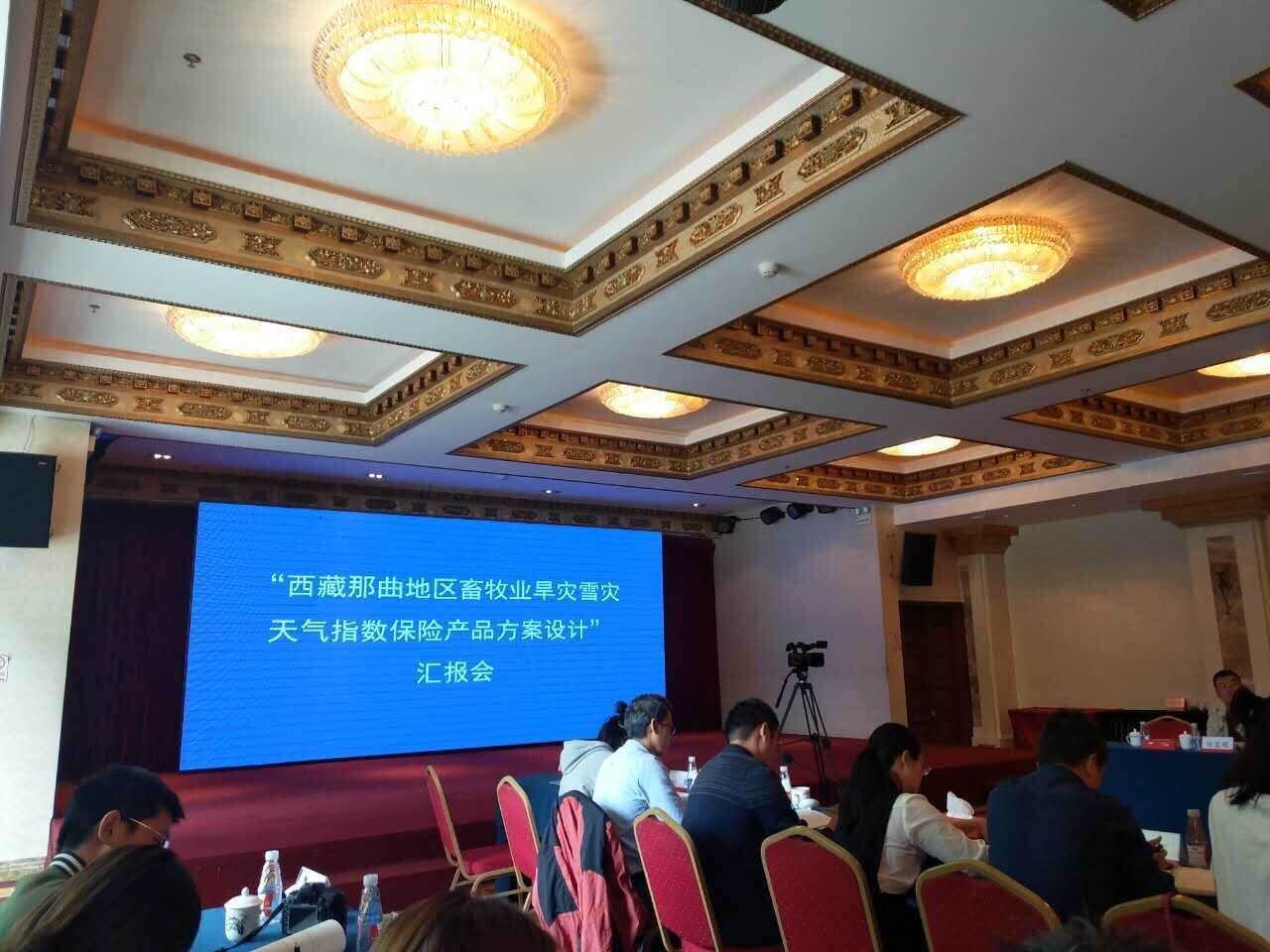 2017年8月17日上午,由减灾院和地表国重共同承担的“西藏那曲地区畜牧业旱灾、雪灾天气指数保险产品设计”项目在拉萨市进行了结题汇报。自治区政府金融办陈满江主任、那曲地区行政公署扎江副专员,自治区财政厅、民政厅、农牧厅、气象局、保监局,以及那曲地区财政局、民政局、农牧局、气象局的相关负责同志出席此次会议。项目委托方人保财险西藏分公司、那曲分公司及项目组全体成员参加了此次会议。