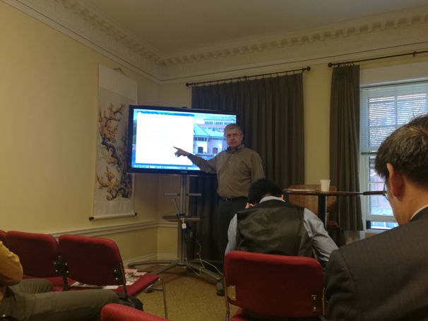 中心主任Tony Janetos教授欢迎项目代表团的到访。他简要介绍了中心主的起源与发展历史,并解释了中心近期在人地复合系统、未来能源与城市系统、全球环境变化、制度与经济治理等方向的研究兴趣和布局。史培军教授向中心介绍了项目代表团的构成、主要任务和兴趣,项目成员单位此前与美国主要大学地理系合作的前期基础,北京师范大学当前在全球变化领域的机构与人员情况,并表达了与中心在全球变化研究领域建立合作的意愿。